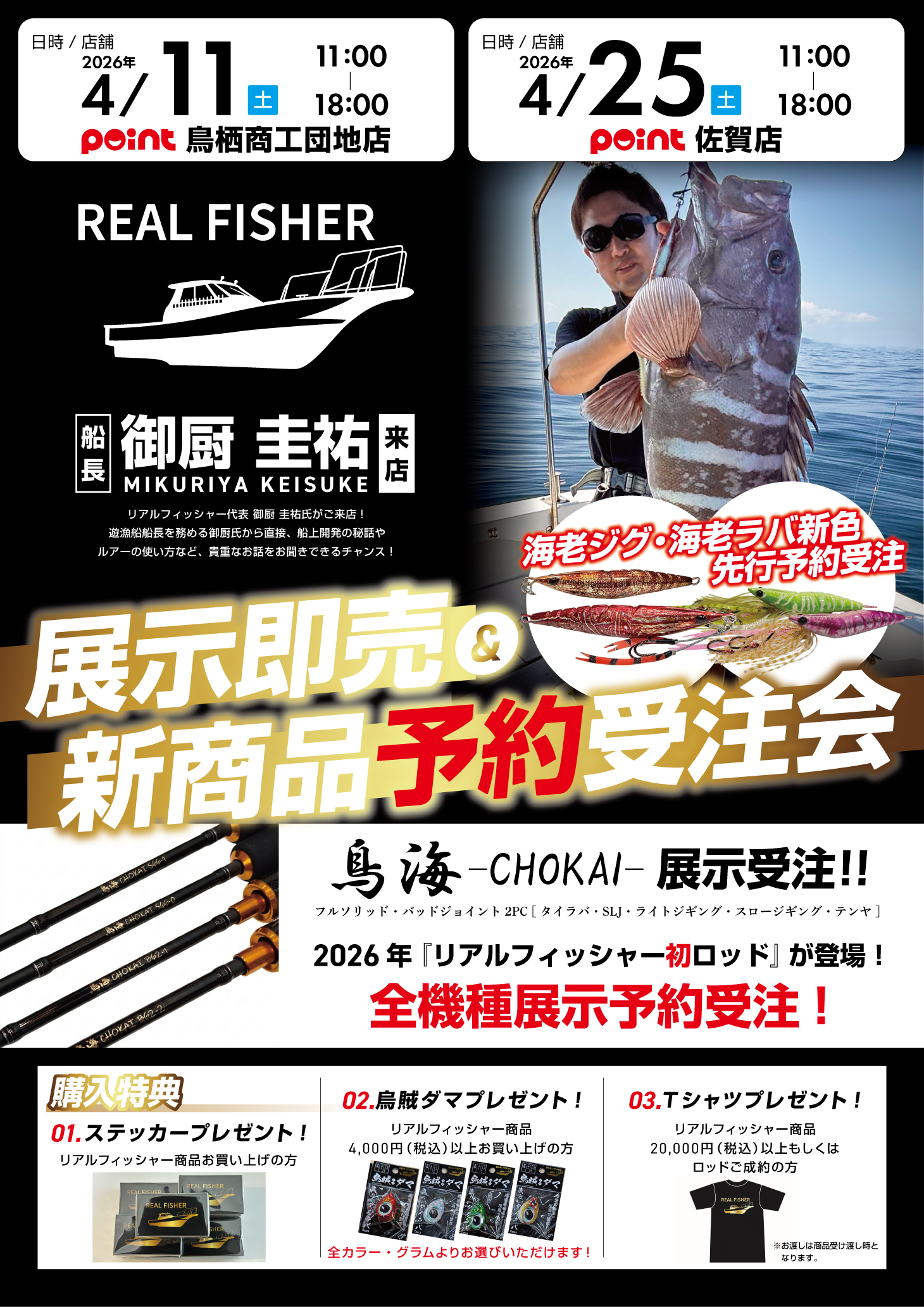 開催 【日時】2026年4月11日(土) 11:0018:00 【場所】釣具のポイント 鳥栖商工団地店 【日時】2026年4月25日(土) 11:0018:00 【...