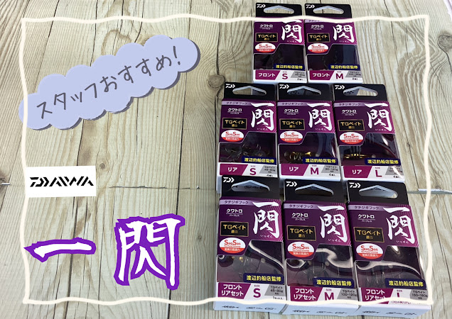 皆様こんにちは 釣具のポイント横須賀佐原店です オススメ商品のご案内です ダイワタチジギフック一閃 SSクワトロ TGベイトに適合したタチウオジギング用クワトロ・トレブルフック。 選べる3サイズ...