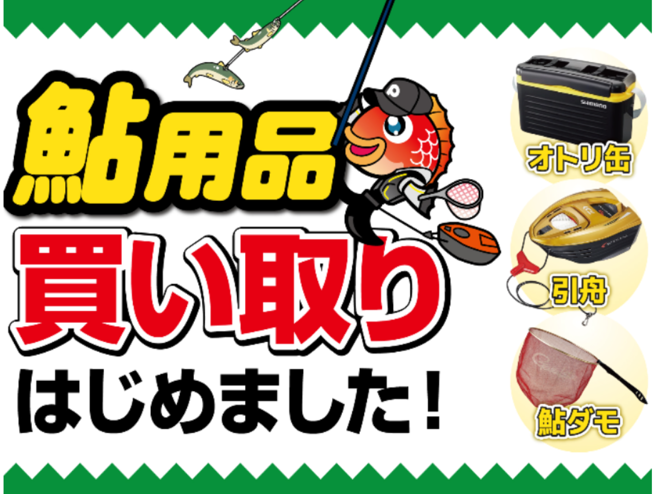 10/20(月)より、鮎用品の買い取りをはじめました! 実施店舗:point全店(ルアースタジアムを除く) 詳しくは当店スタッフにお尋ねください。...