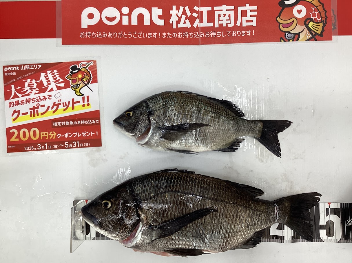 【日付】 2026/03/30 【釣人】 広江様 【釣魚】 チヌ 【サイズ】 50cm 【釣場】 中海 【釣り方】 フカセ   フカセで15匹の釣果!...