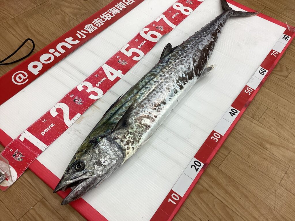小松様よりスーパービッグなサワラのお持込みを頂きました!なんと96㎝4キロオーバーの超良型!関門エリアにてショアジギングでの釣果です!まだまだ関門エリア青物盛り上がってますね!!またのお持込みもお待ちしております!!
