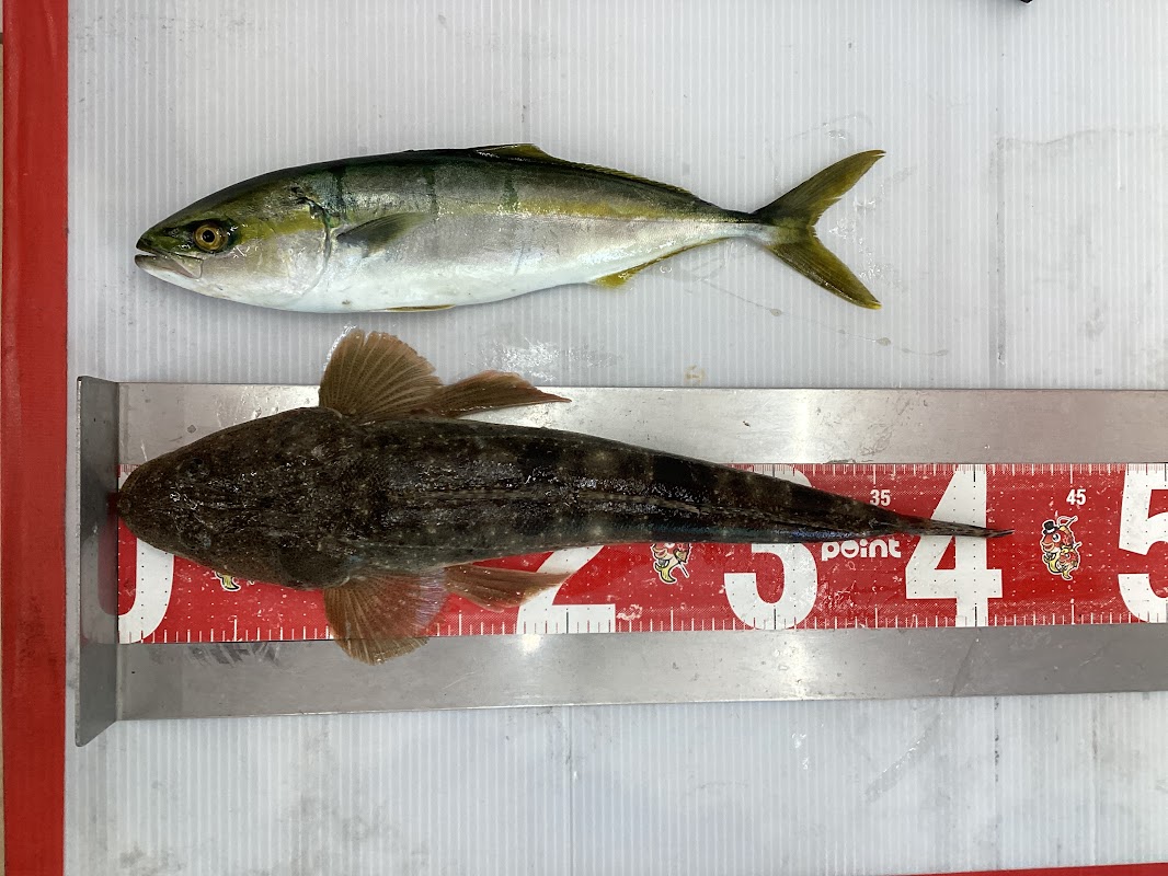 投げ釣りにてマゴチが釣れたそうです!手前の方でHITしたそうです!またのお持ち込みをお待ちしております!