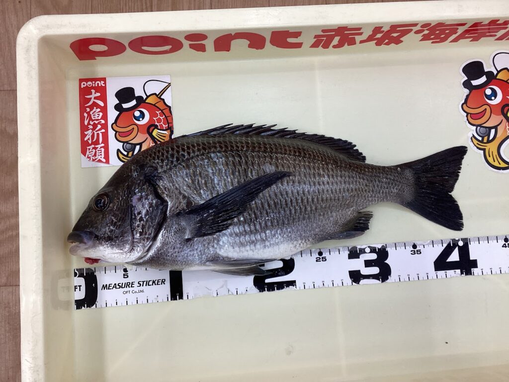 田中様より良型のチヌのお持ち込みを頂きました~!なんと当店最寄りの赤坂海岸にて40㎝オーバーのビッグサイズ!先週に引き続き流石の釣果おめでとうございます!