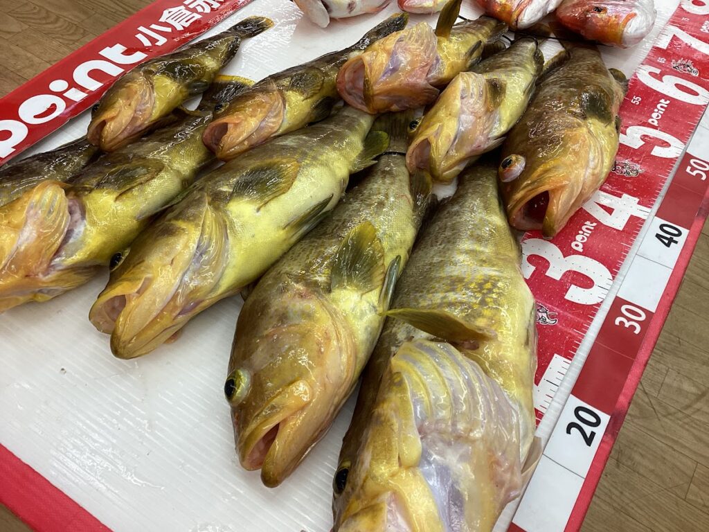 motty様よりタイラバの釣果をお持ち込み頂きました~!!「真鯛が釣りたかった~」とのことでしたが高級魚アオナが大爆釣!!遊漁船ニューイエローさんでの釣果です!流石の釣果おめでとうございます!!またのお持込みもお待ちしております!!