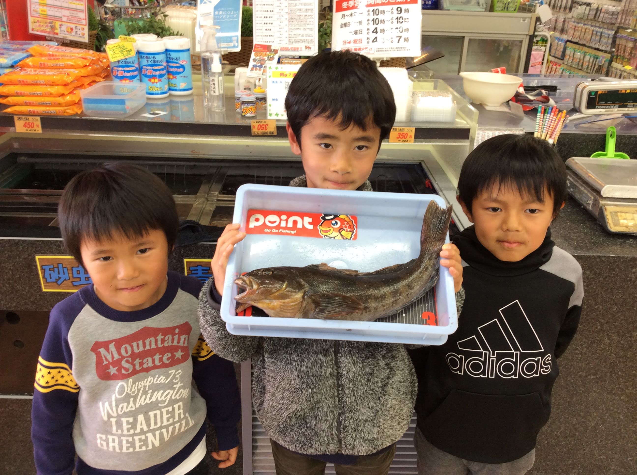 【日付】 2019/2/24 【釣人】 とわ君、みなと君、あおい君 【釣魚】 アイナメ 【サイズ】 41cm726g 【釣場】 坂横浜 【釣り方】 投げ釣り ...