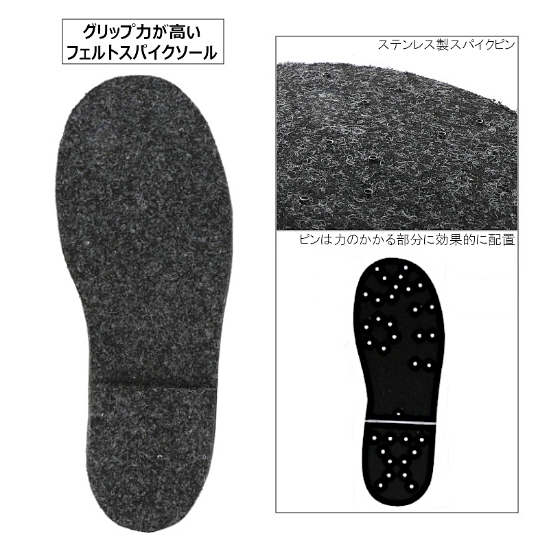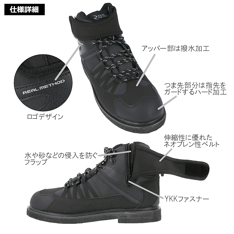 不安定な足場でのグリップ力が高い、フェルトスパイクソールのフィッシングシューズ!!足首の保護と歩きやすさを兼ね備えたミドルカットタイプ。【リアルメソッド】