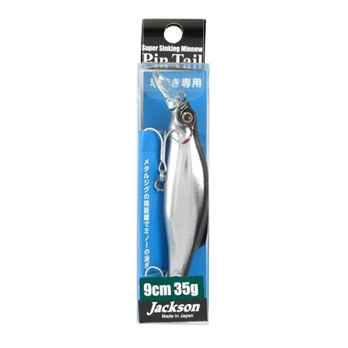 【ジャクソン/Jackson】ミノーのボディでありながらメタルジグ並みの重さを持ち、コンパクトなシルエットとミノーの動きで広範囲を攻めることができる「ピンテールシリーズ」。専用設計のボディを持つため、ピンテールチューンに比べると汎用性が高く、ピンテールチューン同様ファーストリトリーブ中心のモデルではあるものの、対応リトリーブスピードは広がっている。さらに安定性も増しているため誰にでも使いやすく、ただ早巻さえすればウォブリングアクションが手に伝わってくる。アクションはワイドウォブリングアクション。速いテンポの勝負に適した、リアクションバイトを誘いやすい動きだ。ピンテール35やピンテール48では超大物への対応も視野に入れているため、溶接貫通ワイヤーを採用している。