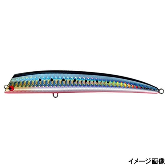 【タックルハウス/TACKLE HOUSE】わずかにヘッド先端を沈める浮き姿勢は水面直下のミノーアクションを重視したため。セルフスイムコントロールと名付けたアクションは、静水時に、海面上でのアクションとミノー状態との比率を1:9に設定。波立つにつれ海面に顔を出す比率を上げ、必要に応じたアピール力を発揮するというもの。ステディリトリーブ時のこの特性を前提に、アングラー側からの操作をプラスすることで、トップで釣れる状況の拡大を狙いました。