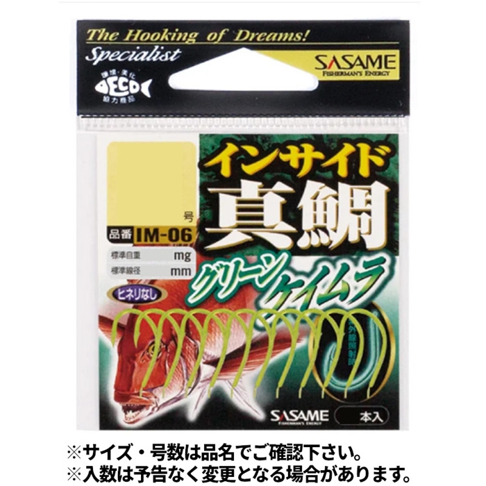 ささめ針 インサイド真鯛 12号 10本入 ケイムラグリーン IM-06