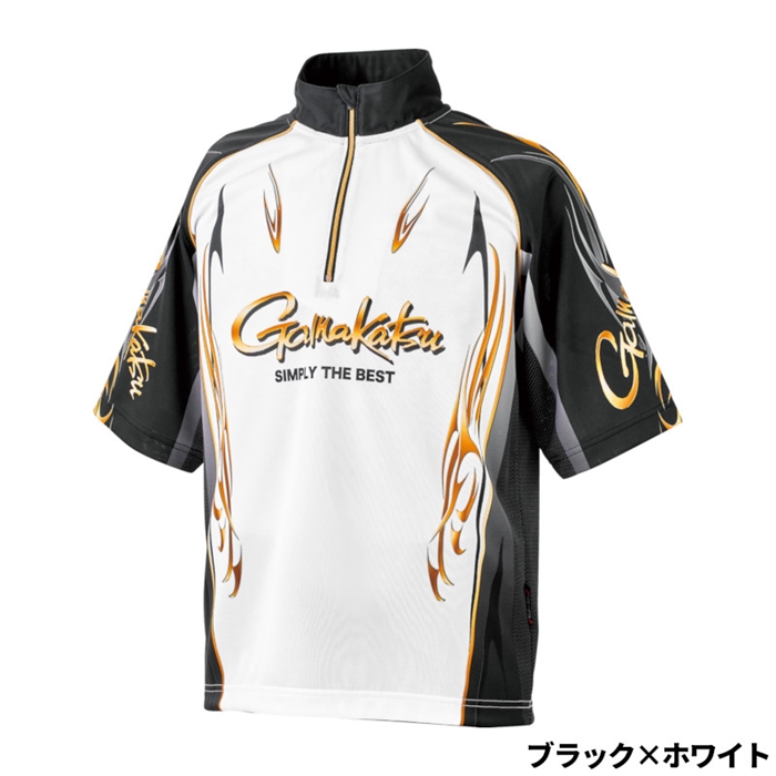 がまかつ 2WAYプリントジップシャツ(半袖) 5L ブラック×ホワイト GM3815