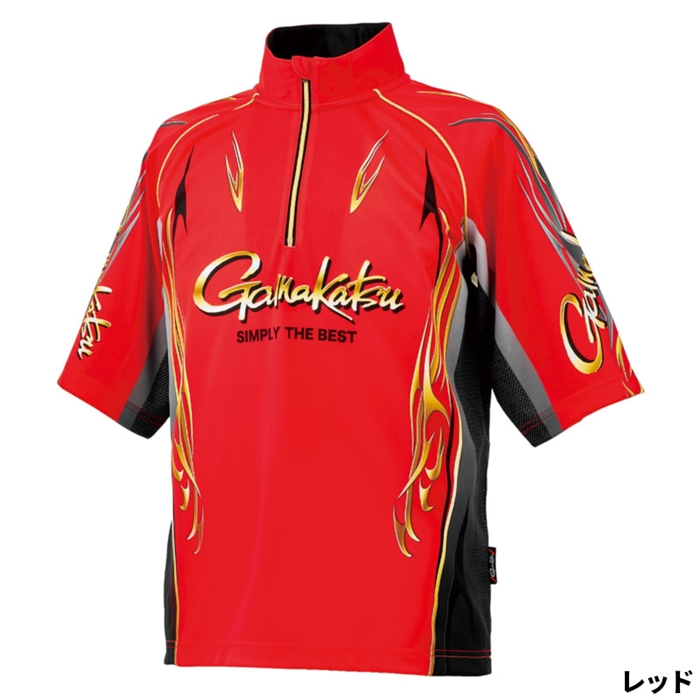 がまかつ 2WAYプリントジップシャツ(半袖) M レッド GM3815