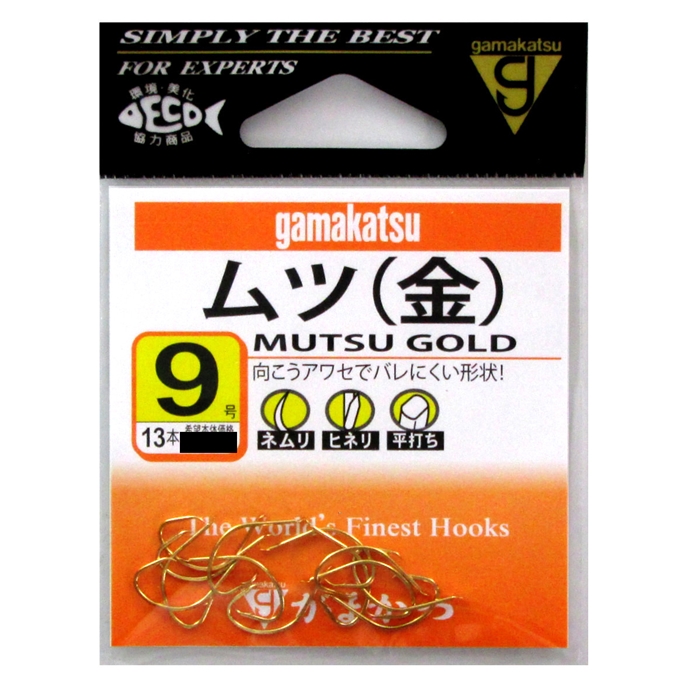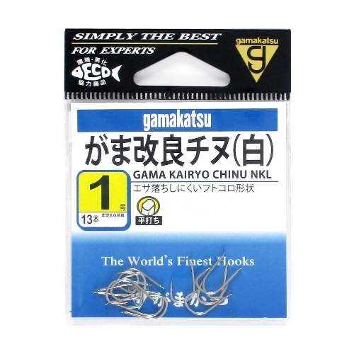 【がまかつ/Gamakatsu】虫餌をまっ直ぐに刺せて、ズリ落ち防止のケン付です。鈎立ちが鋭くて外れにくく、長い軸をつまんで引き出すと外しやすくなっています。(ヒネリ/ケン付仕様/平打ち)