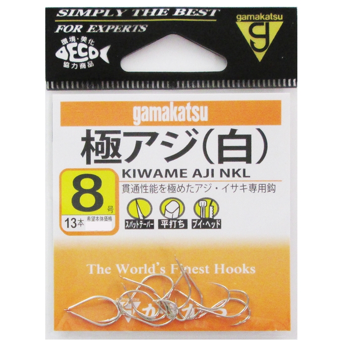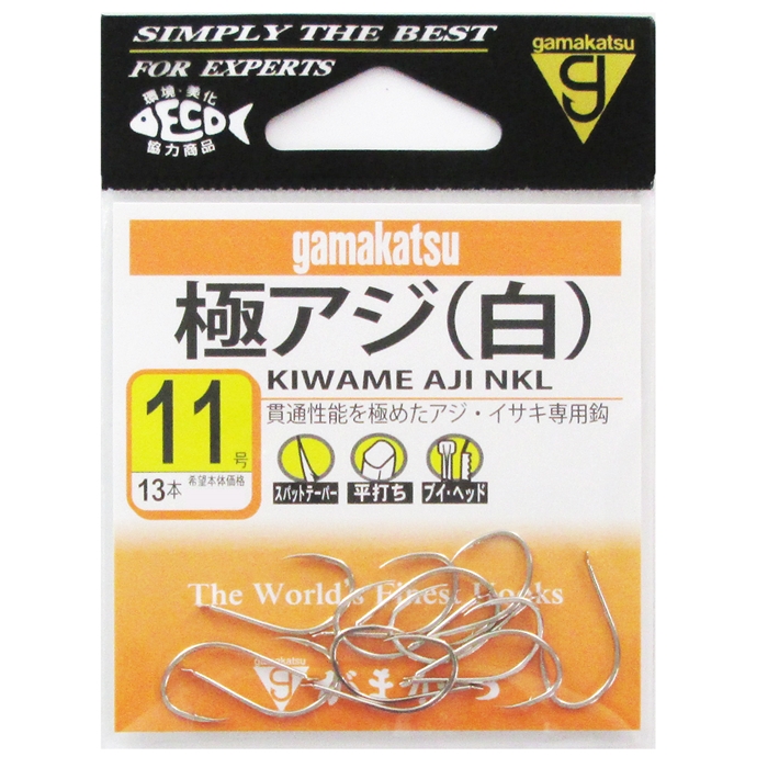 【がまかつ/Gamakatsu】アジを極めるという大胆なコンセプトを全面に打ち出した船用アジ鈎です。鈎先部には驚異的な貫通性能を誇るスパットテーパーを採用。バラシを防ぐためにフトコロは深く仕上げました。(スパットテーパー/平打ち/ブイ・ヘッド)