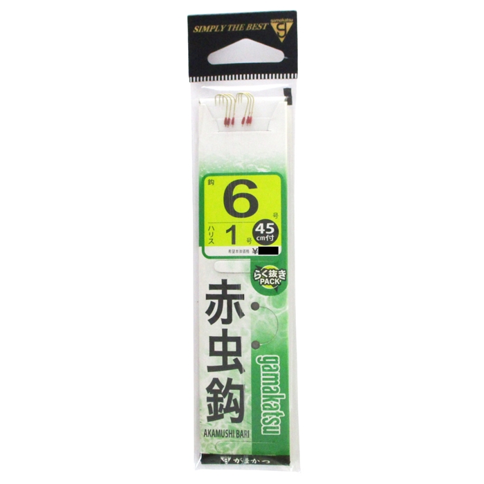 【がまかつ/Gamakatsu】チモトの赤糸染めが赤虫の赤をより強調します。「らく抜きPACK」で引き抜き楽々。