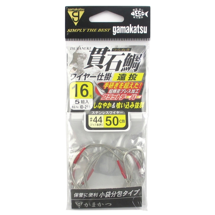 がまかつ 貫石鯛ワイヤー仕掛 遠投 ID-211 針16号-ワイヤー#44