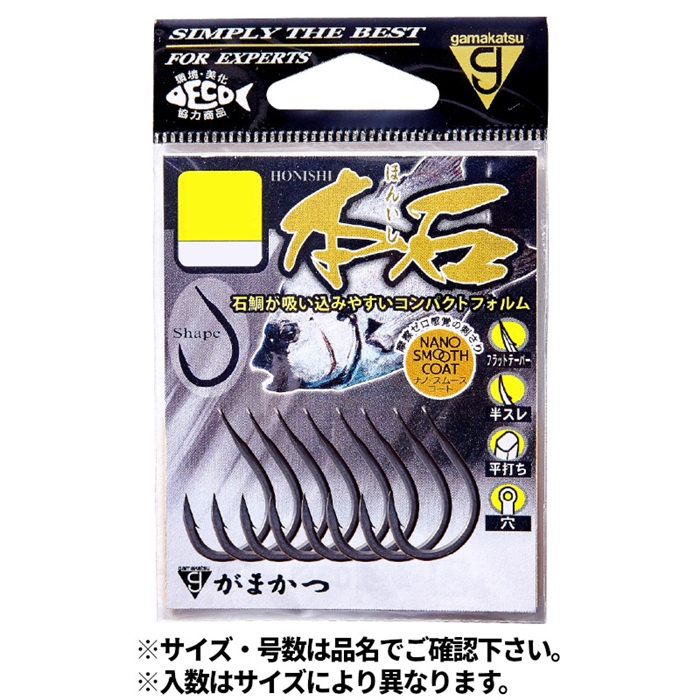 【がまかつ/Gamakatsu】石鯛が吸い込みやすい形状に仕上げているため、食い込み抜群です!鈎先の耐久性と貫通力を向上させるフラットテーパーを採用し、さらに表面にはナノスムースコートが施されているため、石鯛のカンヌキを簡単に貫きます![HONISHI]