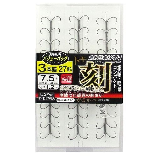 がまかつ バリューパック T1 刻 3本錨 A-141 針7.5号-ハリス1.2号
