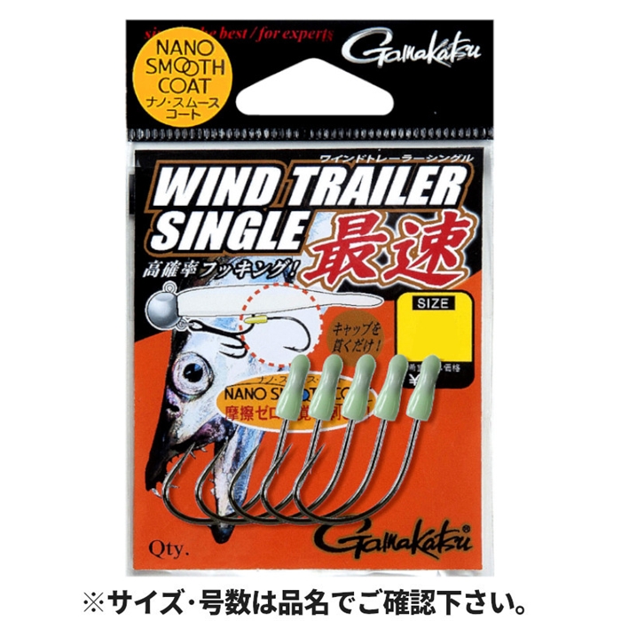 【がまかつ/Gamakatsu】元祖ワインドトレーラーフックがパワーアップ!ワインド釣法の釣果を劇的に変えた元祖トレーラーフックシリーズです。従来品からの強化点としてキャップには強力発光のグローキャップを使用しバイトマーカーとしての機能をプラス。ワームの中心部を喰わせることでより確実なフッキングが可能。スタンダードの「ダブル」、手返し重視の「シングル」、アクションにキレを出し、積極的に掛ける攻撃的な釣りが可能な「最速」、スタイルに合わせた最適チョイスが可能なラインナップで釣果を確実に変えることが可能なシリーズです。「フックが変われば釣果が変わる!!」を是非、ワインドゲームで体感下さい。[WIND TRAILER SINGLE]