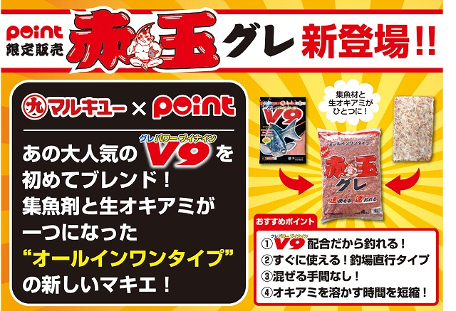 あの大人気エサメーカーのマルキューとコラボし、ベースの集魚剤には「グレパワーV9」を配合!