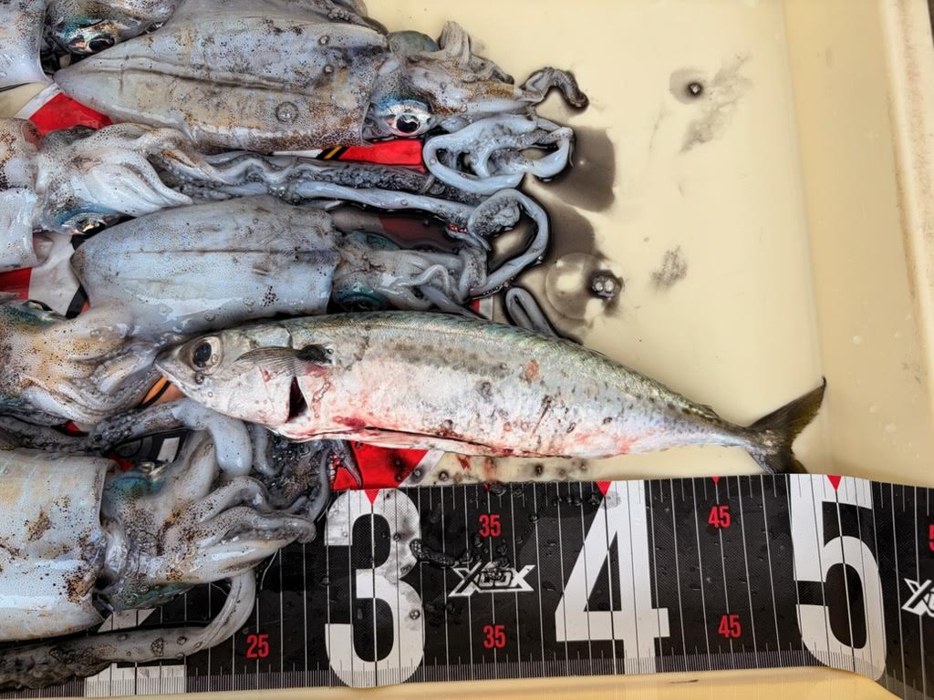 【釣魚】アオリイカ6杯、サバ1匹