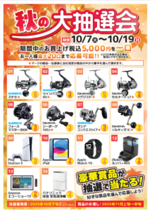 豪華賞品が当たる!『秋の大抽選会』開催!