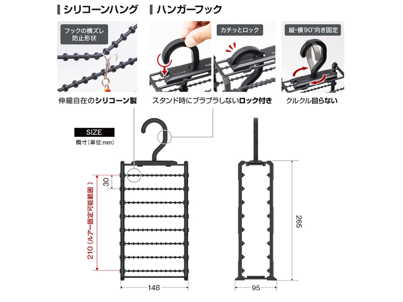 シリコーン製の伸縮ハングで、 コンパクトに収納できるのも嬉しい💡