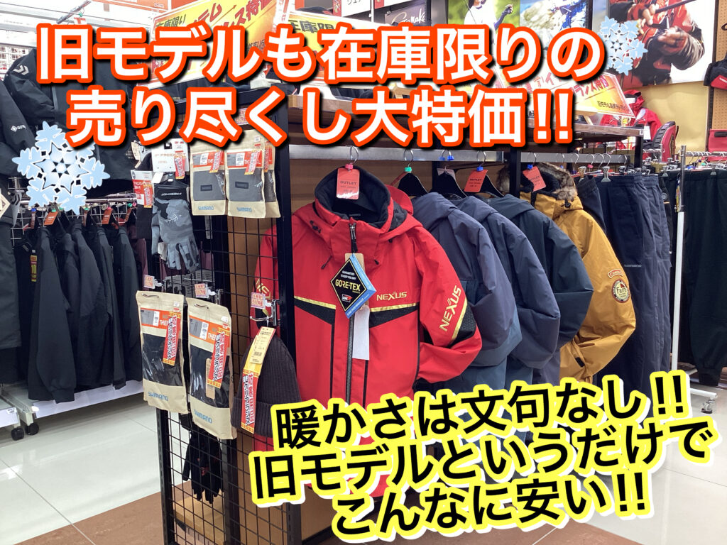 旧モデル有名メーカーの防寒も大特価!!