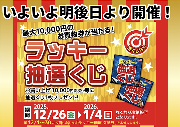 1万円お買い上げごとに1枚くじが引けます👌👌