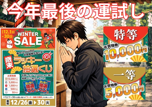 最大で¥10,000分のお買物券が当たる