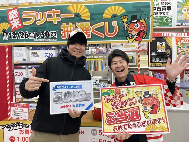 本日、26日より開催中の ラッキー抽選くじ ぞくぞくと1等、特等 のご当選出ております🎯