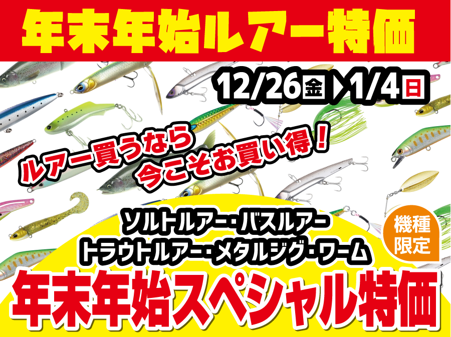 機種限定にはなりますが各種ルアー、ワームが『年末年始スペシャル特価』に!