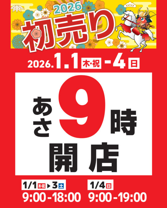 初売り最終日の1月4日は朝9時から夜7時となっております。