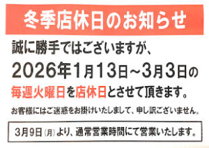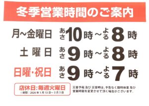 冬季営業時間のご案内です⏰