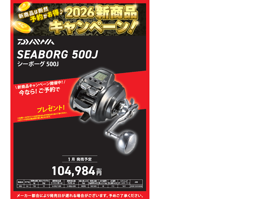 🎣✨入荷しました!✨🎣ダイワ シーボーグ500J