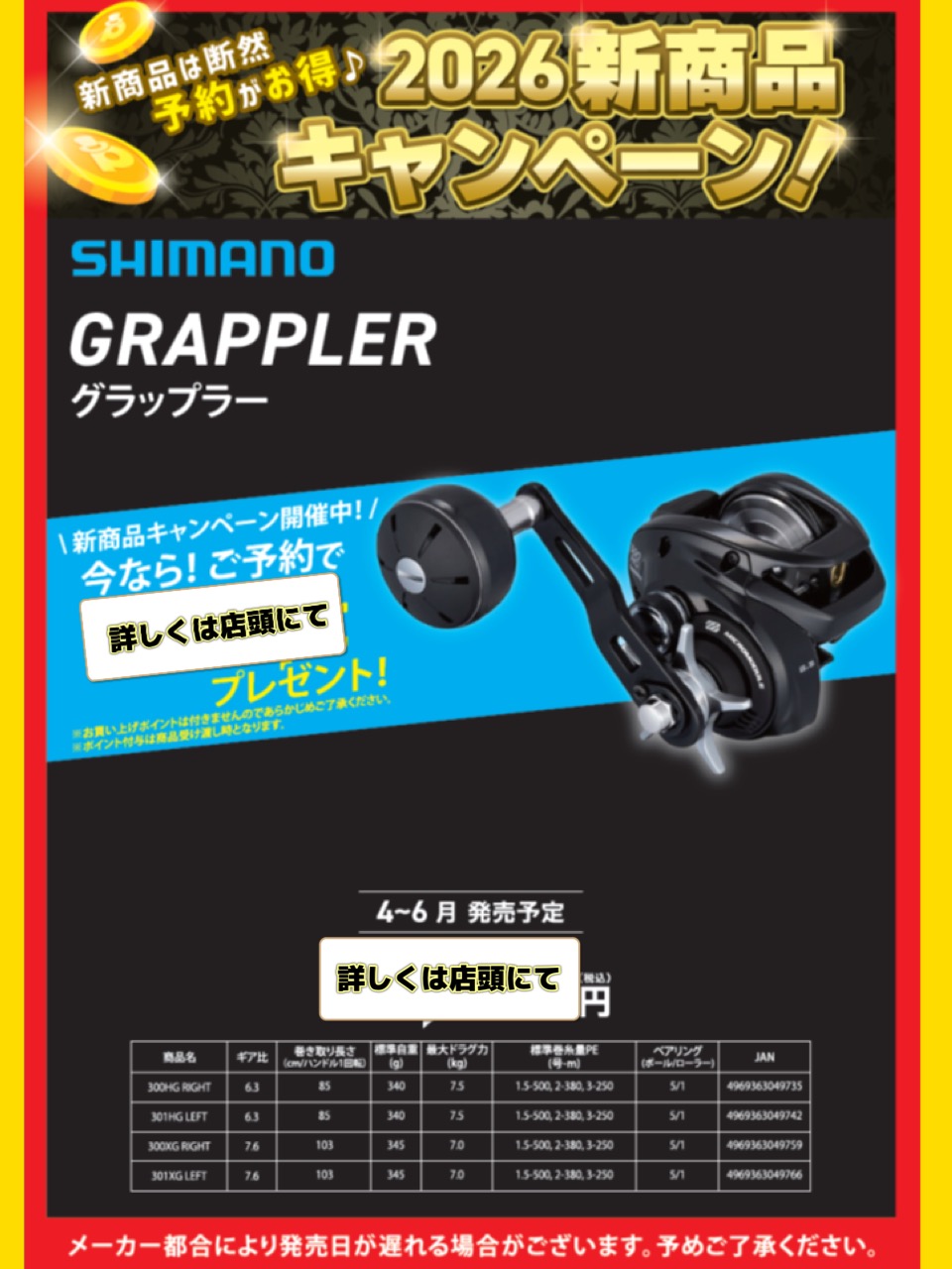 【2026新商品キャンペーン】開催中(^^)/ SHIMANO『26グラップラー』編
