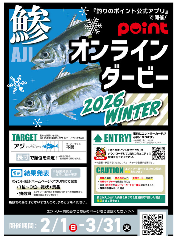 ポイントオンラインダービーの鯵を開催致します!