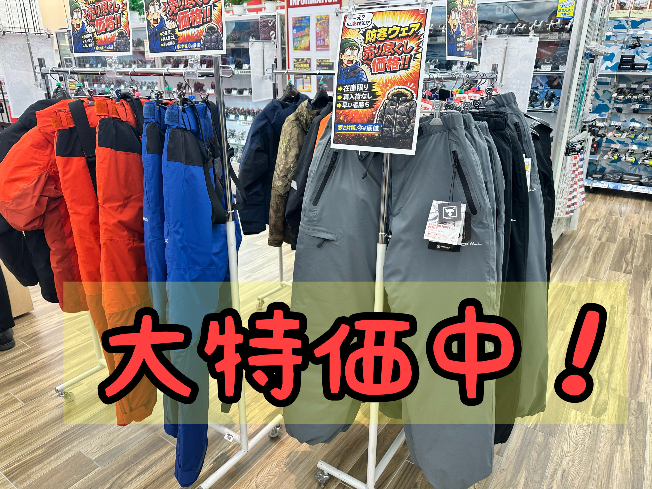 大特価防寒衣料特設コーナーを設置しております!!