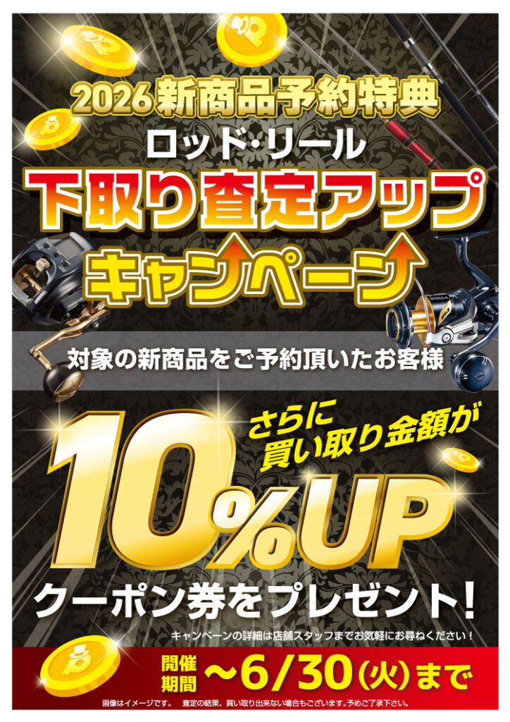 中古釣具の買取金額が10%upする
