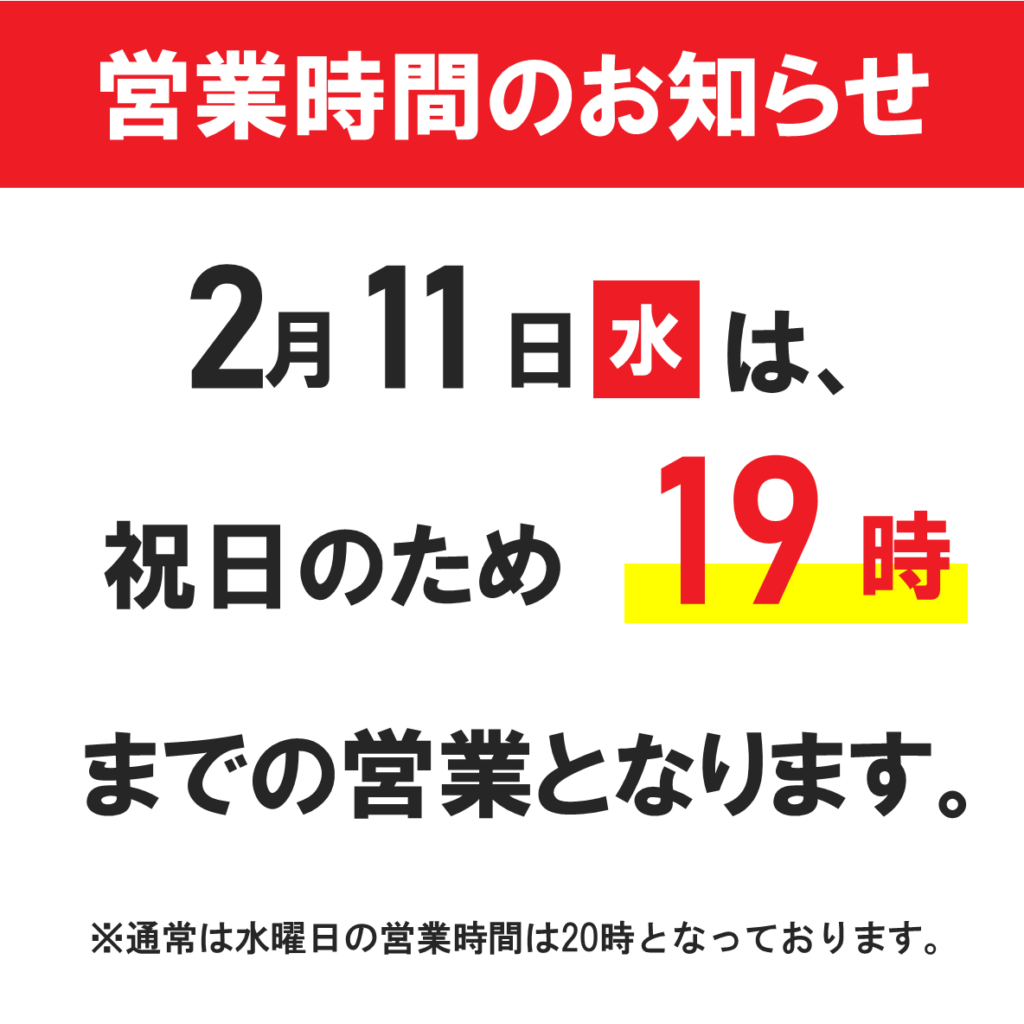 19時までの営業となります