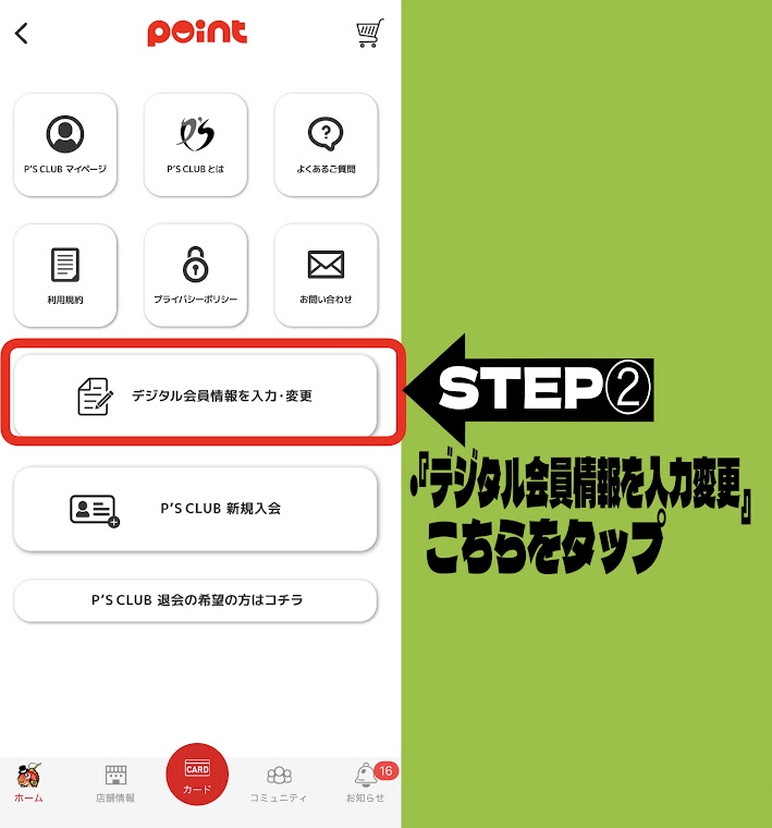 『デジタル会員情報を入力・変更』を