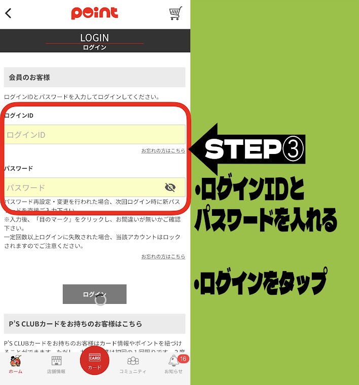 ログインをタップ👆