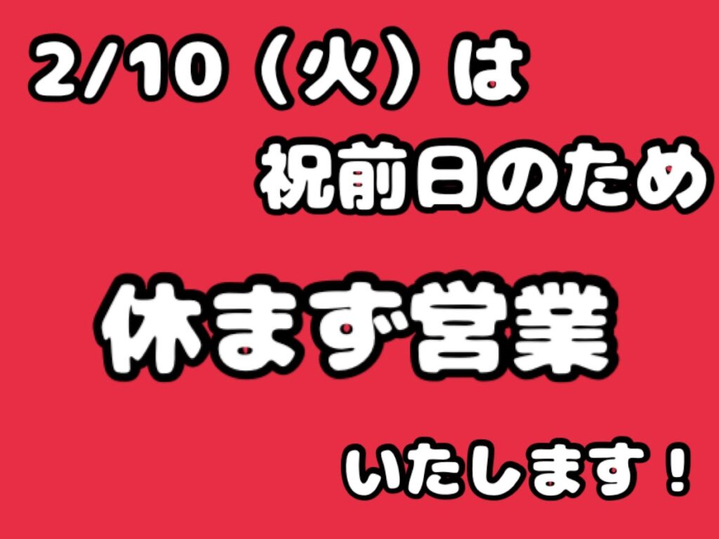 明日2月10日㈫は祝前日の為、