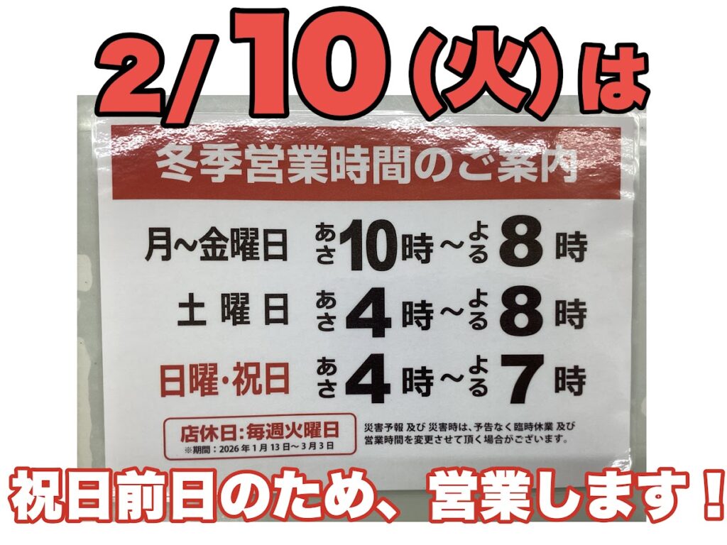 3/3まで冬季営業により