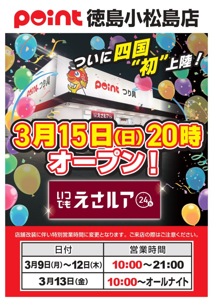 【重要なお知らせ📣】🎊無人営業『えさルア』&改装にともない営業時間変更のご案内🙇