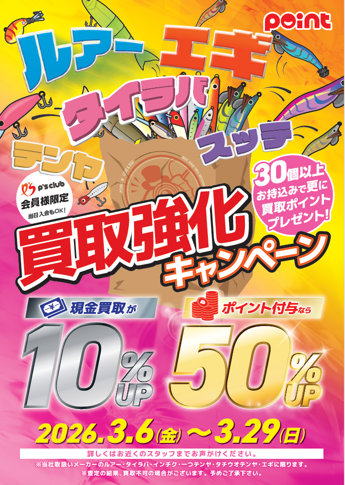 【お知らせ】中古釣具買取強化キャンペーン開催!!