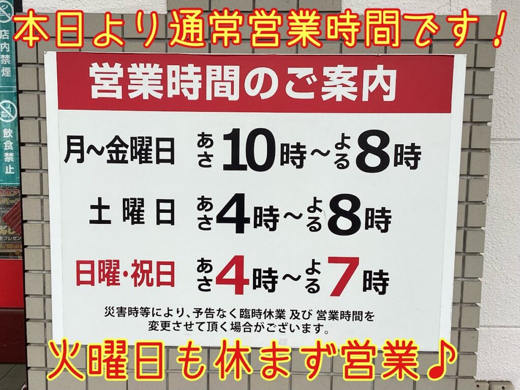 本日より通常営業時間にて