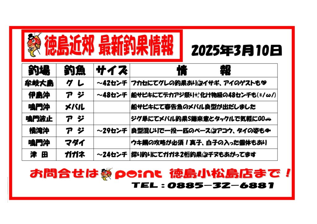【最新】🎣徳島近郊 リアル釣果情報🎣 (3月11日)