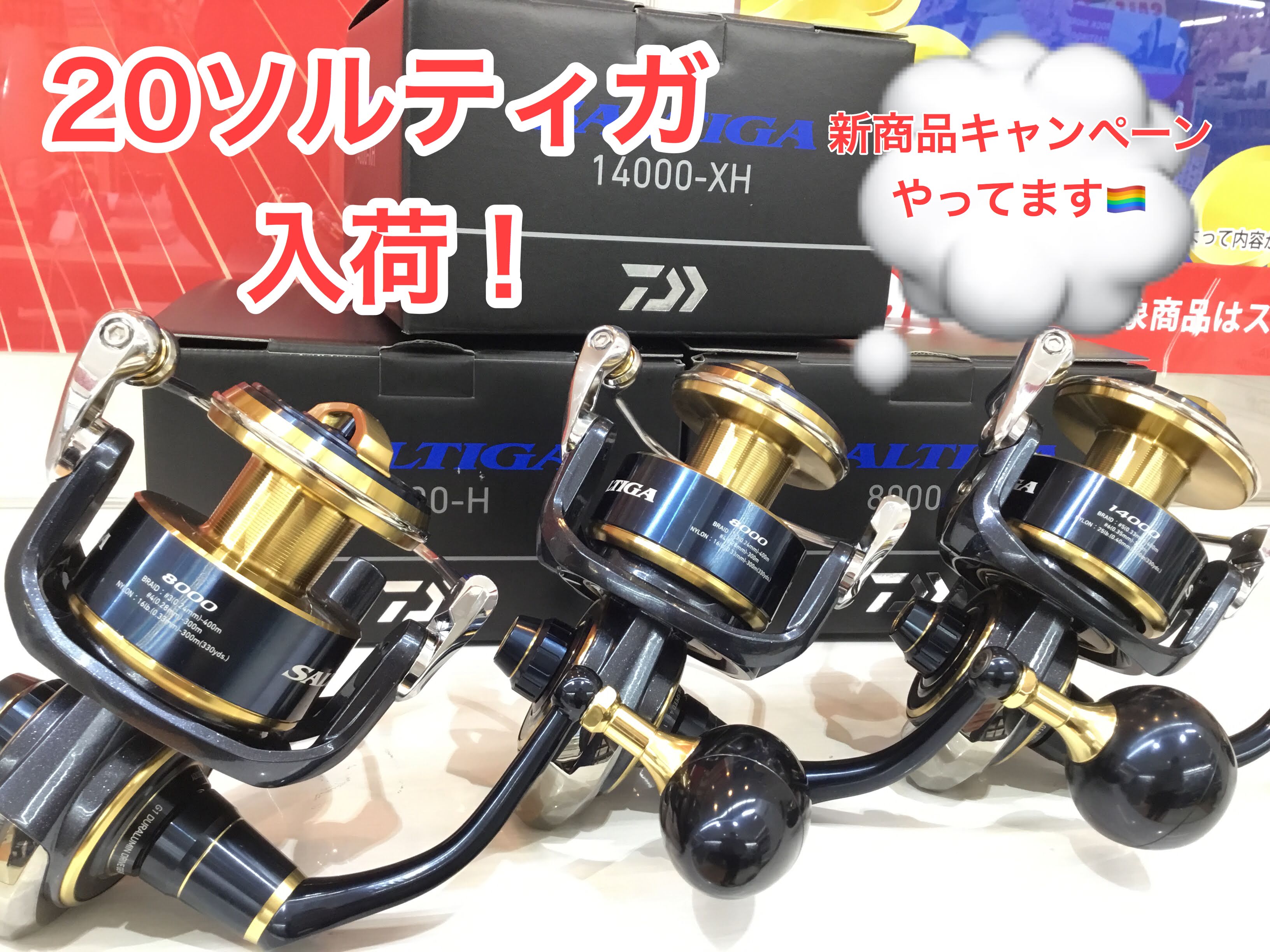 みなさまこんにちは! 待ちに待ったダイワの大型リール 【20ソルティガ】が入荷しました! 今回入荷した番手は 8000-H・8000-P・14000-XHです!...