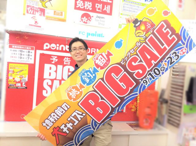 こんにちは! ポイント香椎店です 皆様お待たせいたしました! お待ちかねのSALEのお知らせです 9月10日(火)23(月・祝)は 増税前の大チャンス! 『挑!釣!超!BIGSALE』...