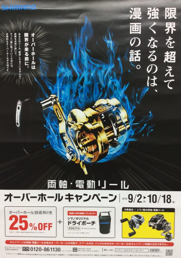 こんにちは博多築港店です いつもHPをご覧いただきまして誠にありがとうございます 今回はシマノの「オーバーホールキャンペーン」のお知らせです 期間は9月2日(月)10月18日(金)までです。...
